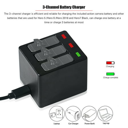 Chargeur De Batterie Pour Camera D Action 3 Canaux Avec Cable Usb Pour Charge Rapide Pour Gopro Hero 5 Hero 6 Hero 2018 Hero 7 Noir Walmart Canada