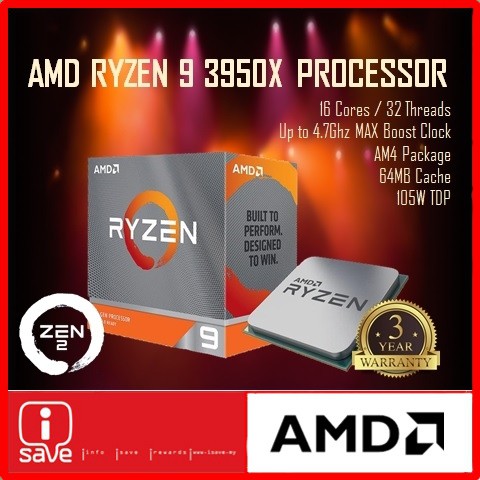 Amd Ryzen 9 3950x Ryzen 3rd Gen Cpu Processor Socket Am4 Ryzen 9 3950x 16 Core 32 Threads Up To 4 7ghz Tdp 105w Shopee Malaysia